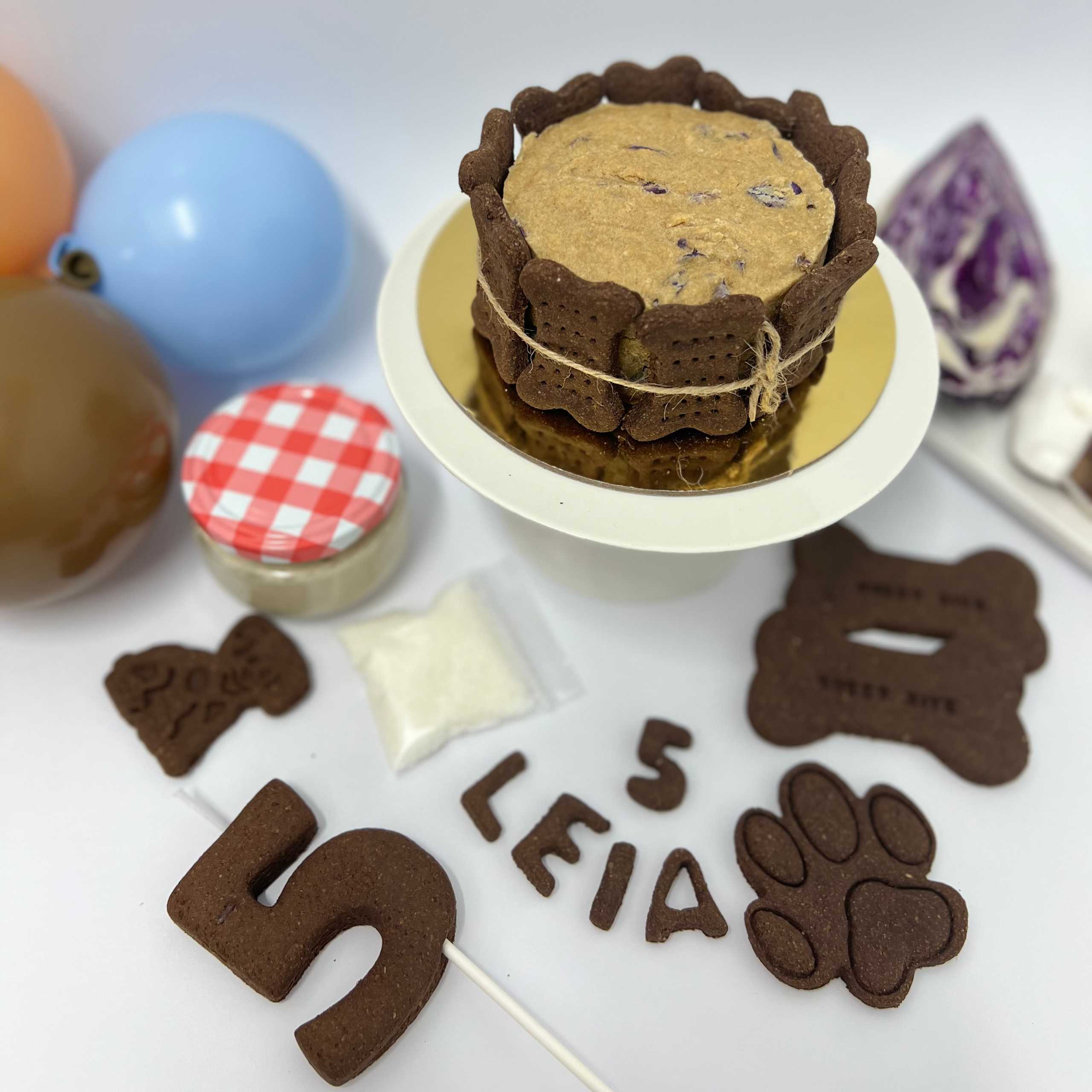 Los huesitos de alrededor serán de color Choco hechas a base de manzana, canela, miel, huevos camperos, agua mineral, harina de avena, harina de algarroba y AOVE (aceite de oliva virgen extra).